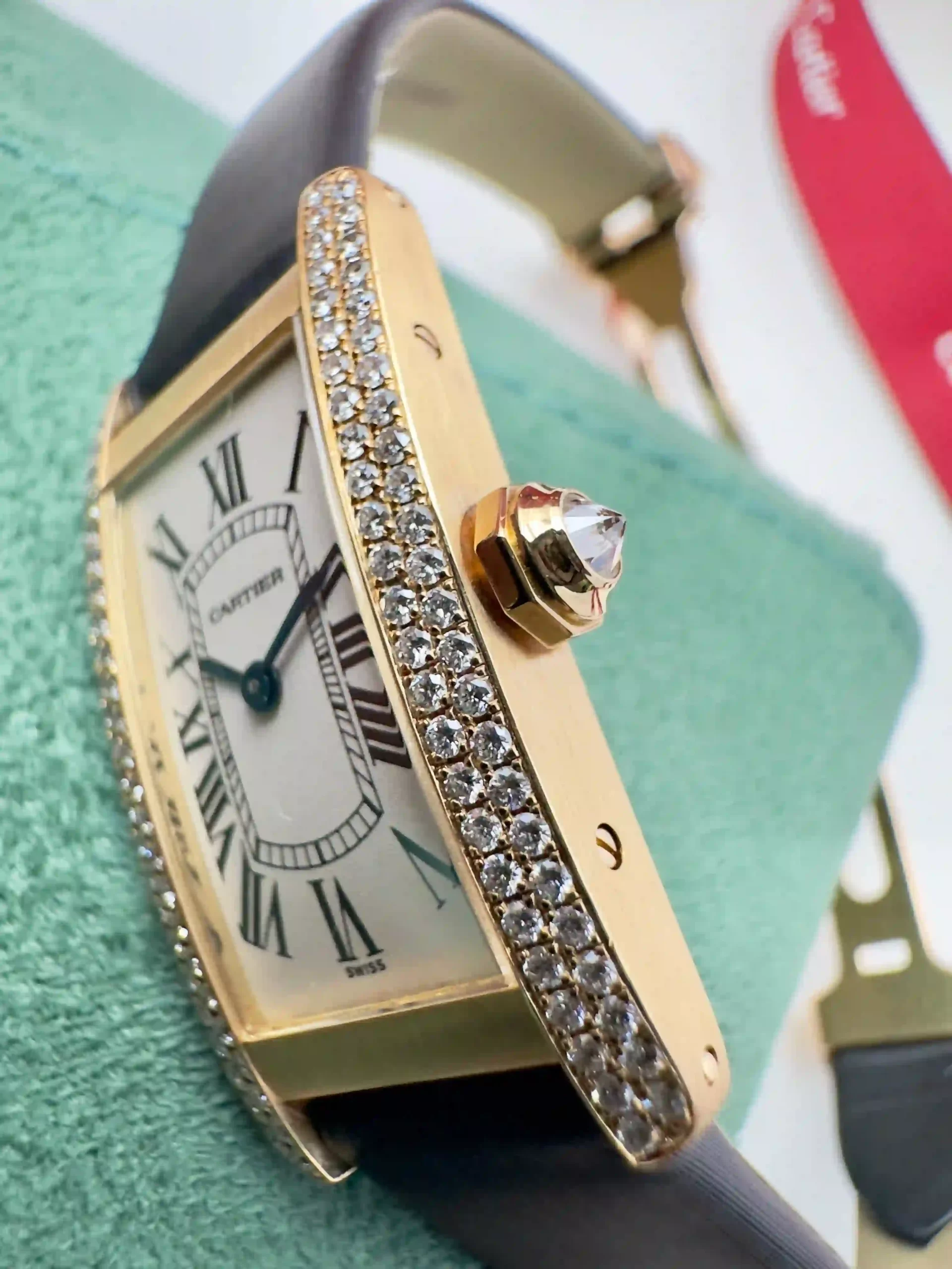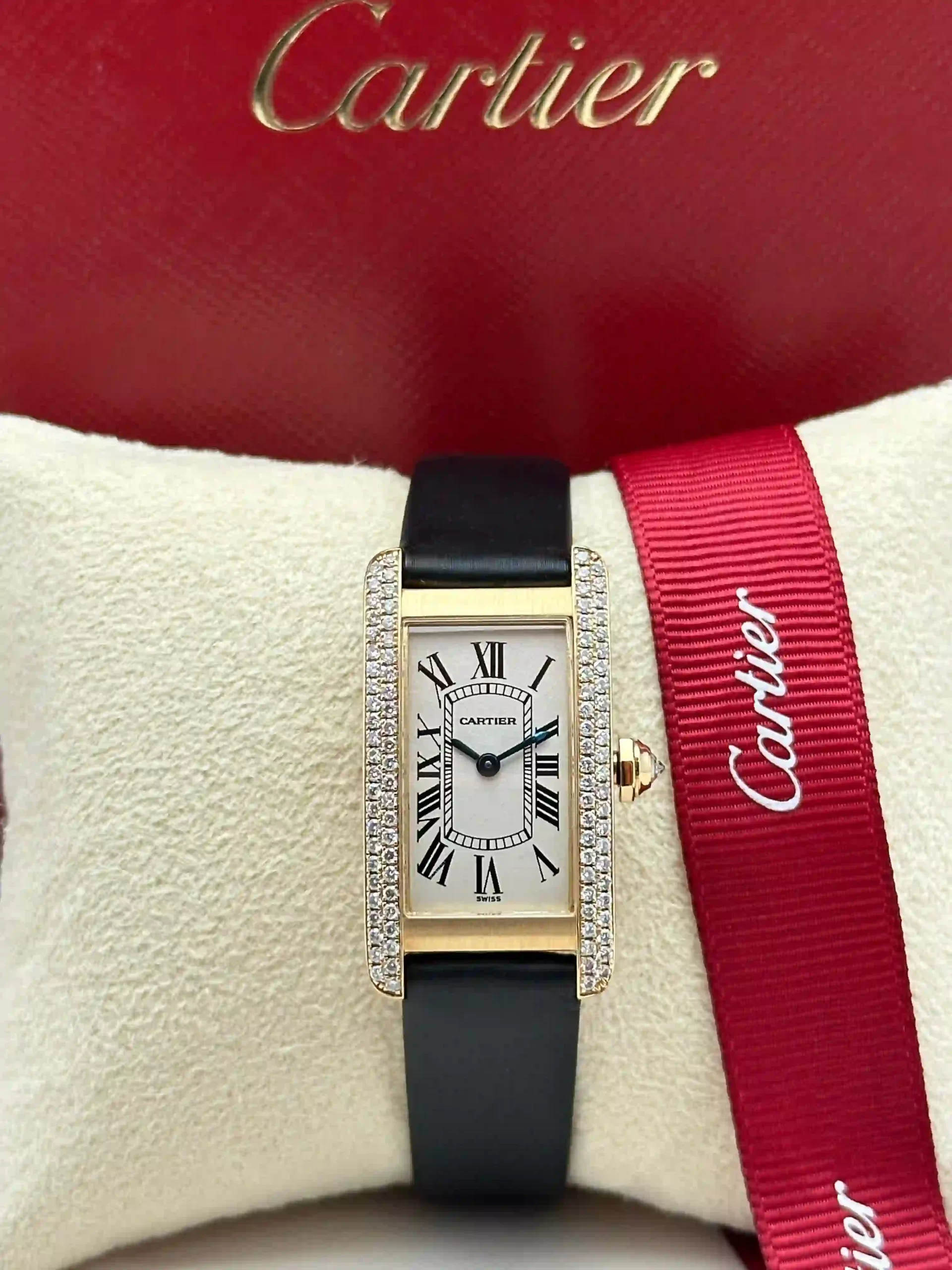 Buy Cartier Tank Americaine Watch WB701251 , Small Model , 18k Yellow Gold , Factory Diamonds , Leather , Discontinued Model , 100% Original , Best Price In Dubai & UAE