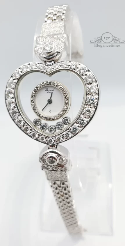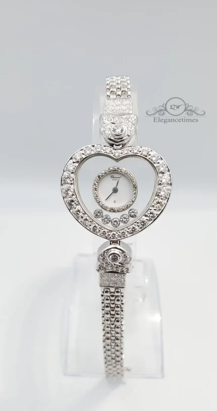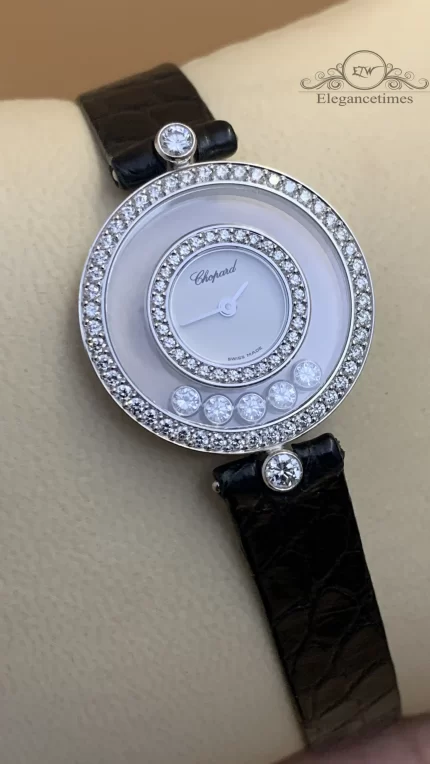 Since 1976, Chopard has established a strong reputation and identity by revolutionising the watch industry with the Happy Diamonds line. For the very first time, moving diamonds could be appreciated between two sapphire crystals on the watch face. Explore the full range of Chopard floating diamond watches for women: diamond watches, white gold and rose gold watches or watches with leather straps.