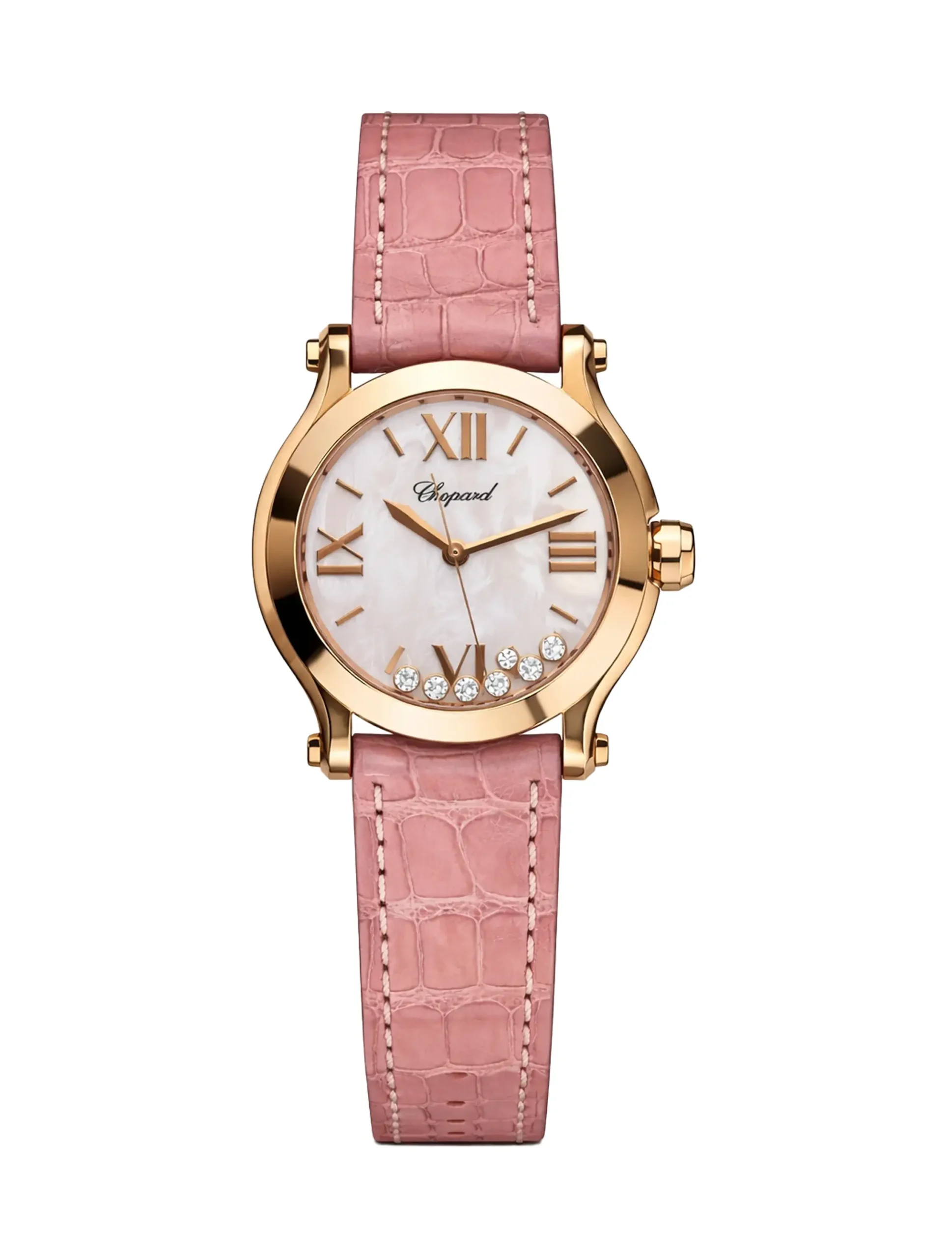 Buy Chopard Happy Sport Watch 277471, 18k Rose Gold, Factory Diamonds, Pink Leather, Mother Of Pearl Dial, Quartz, Best Price In Dubai & UAE, 100% Authentic