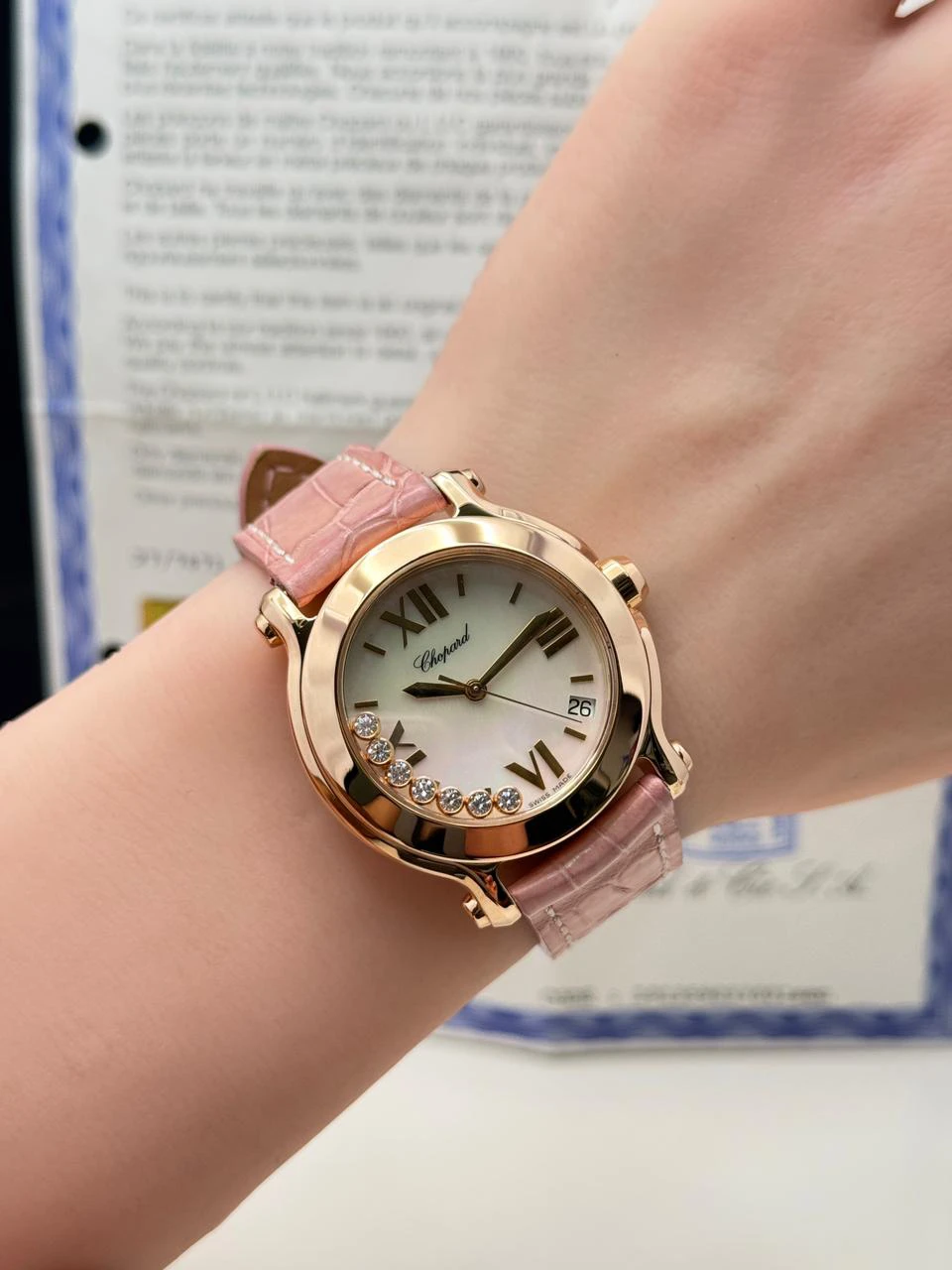 Chopard-Happy-Sport-Watch-247471-18k-Rose-Gold-Factory-Diamonds-Pink-Leather-MOP-Dial-Side Chopard-Happy-Sport-Watch-247471-18k-Rose-Gold-Factory-Diamonds-Pink-Leather-MOP-Dial-Hand Chopard-Happy-Sport-Watch-247471-18k-Rose-Gold-Factory-Diamonds-Pink-Leather-Certificate