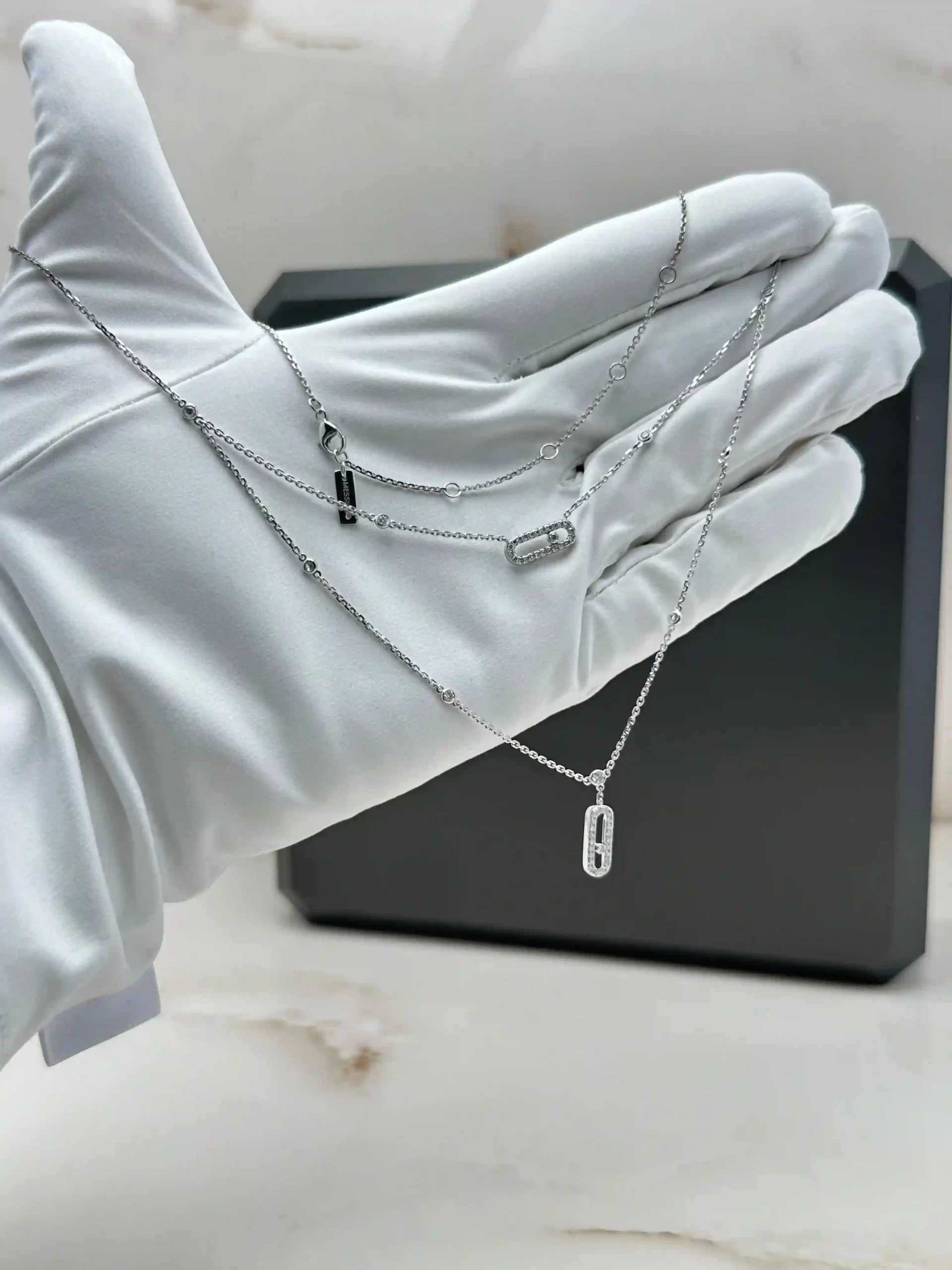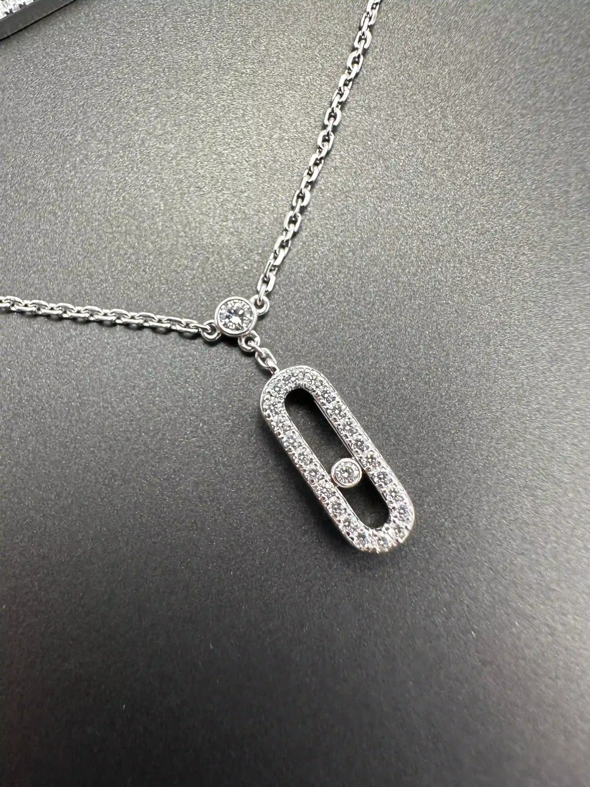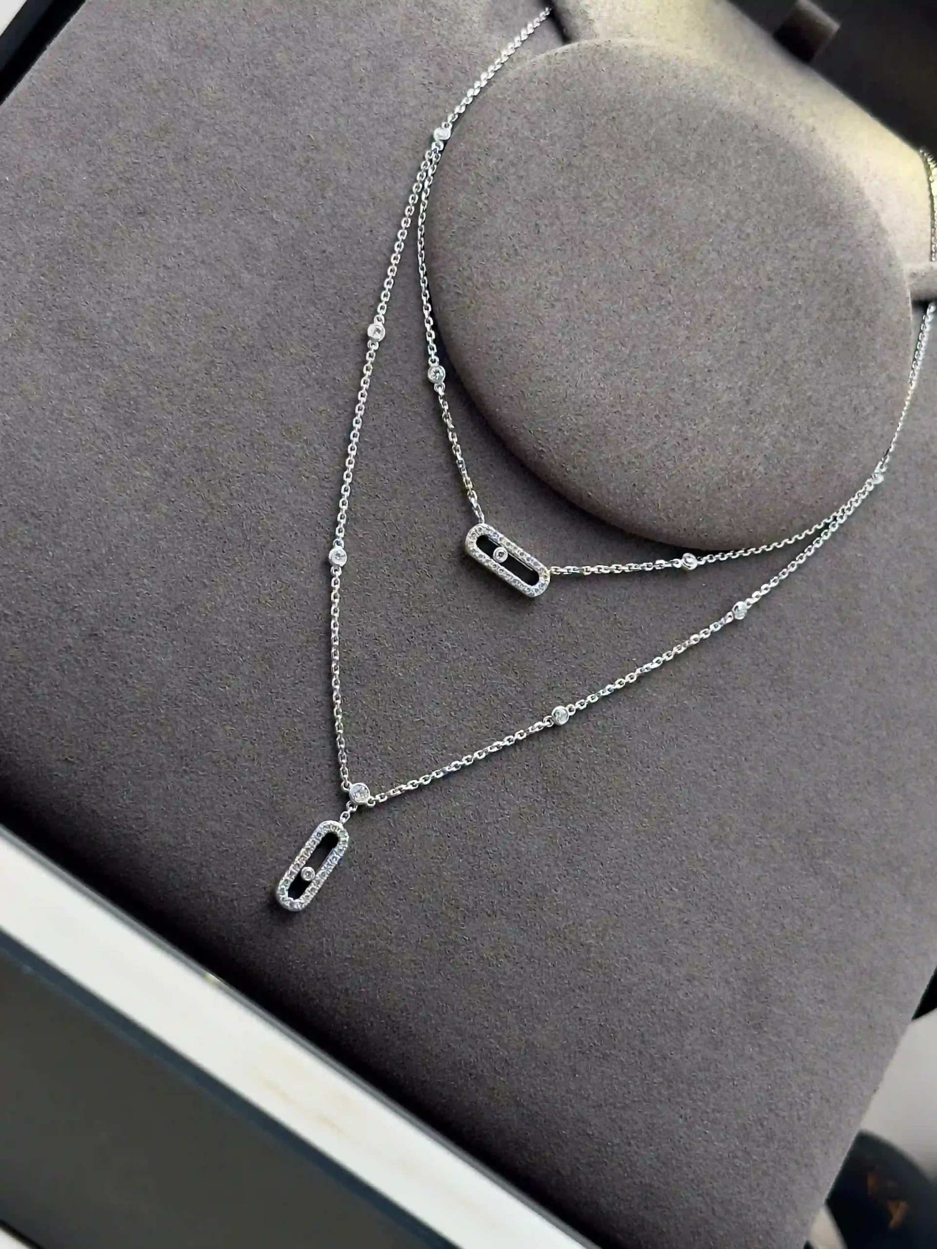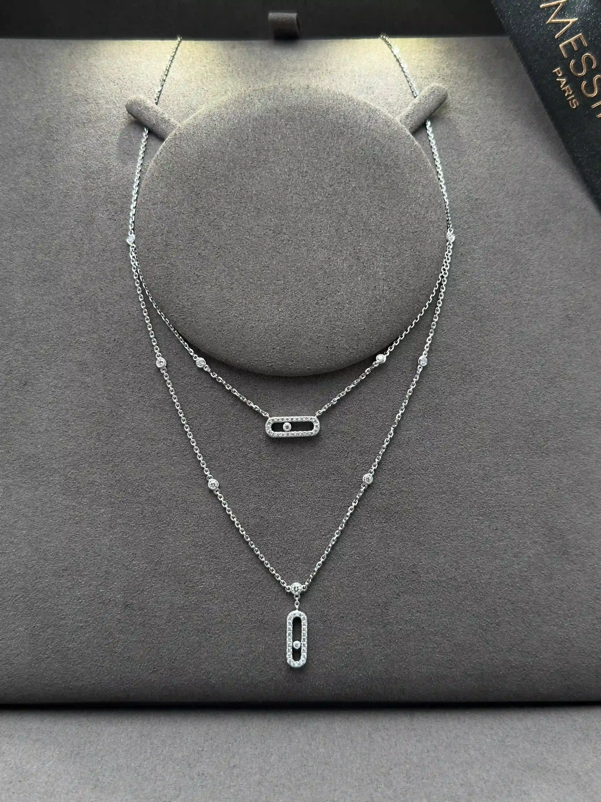 Buy Messika Move Uno Necklace 07174 , 2 Rows Pave Diamonds 18k White Gold , 100% Authentic , Best Price In Dubai & UAE