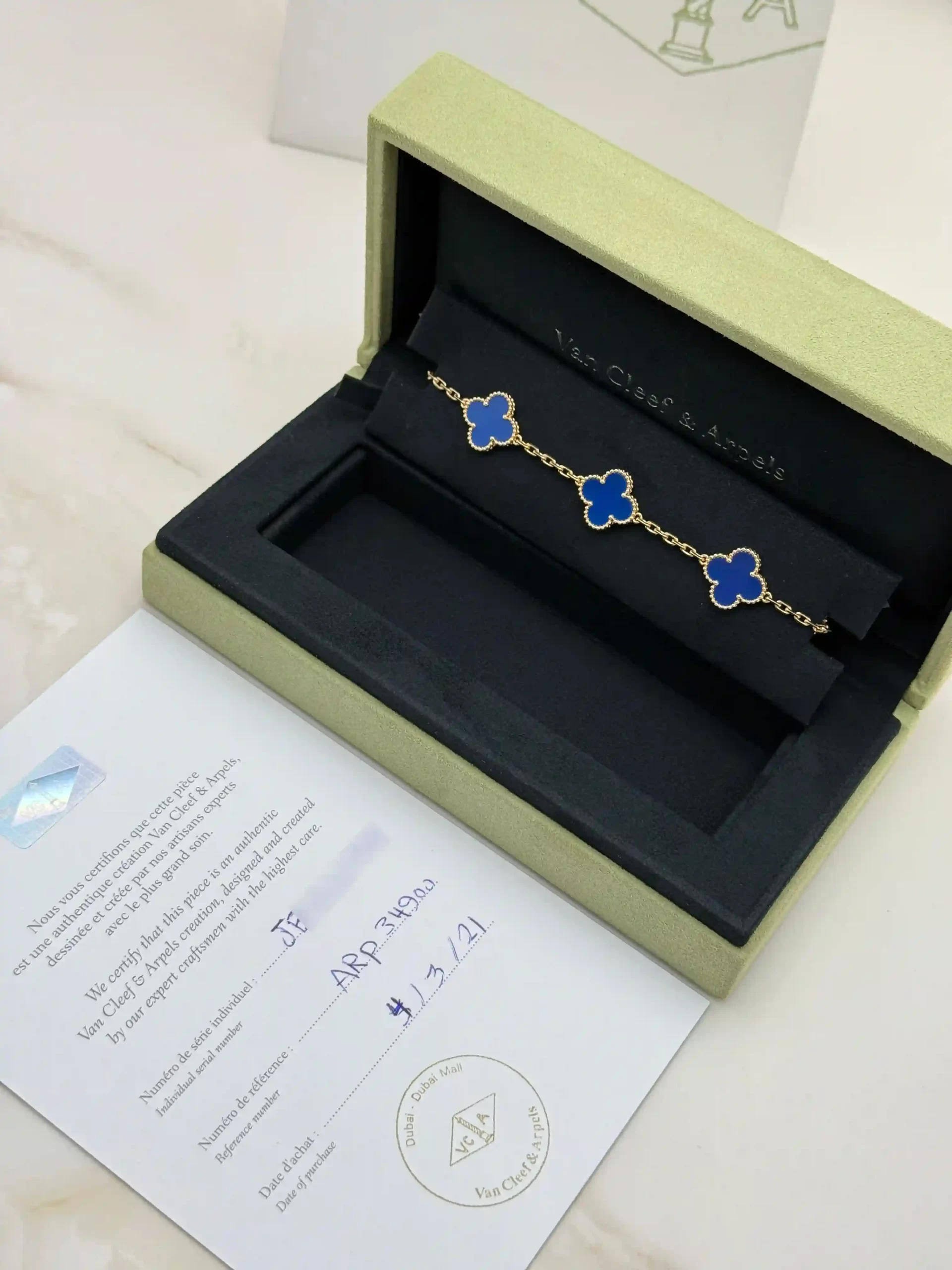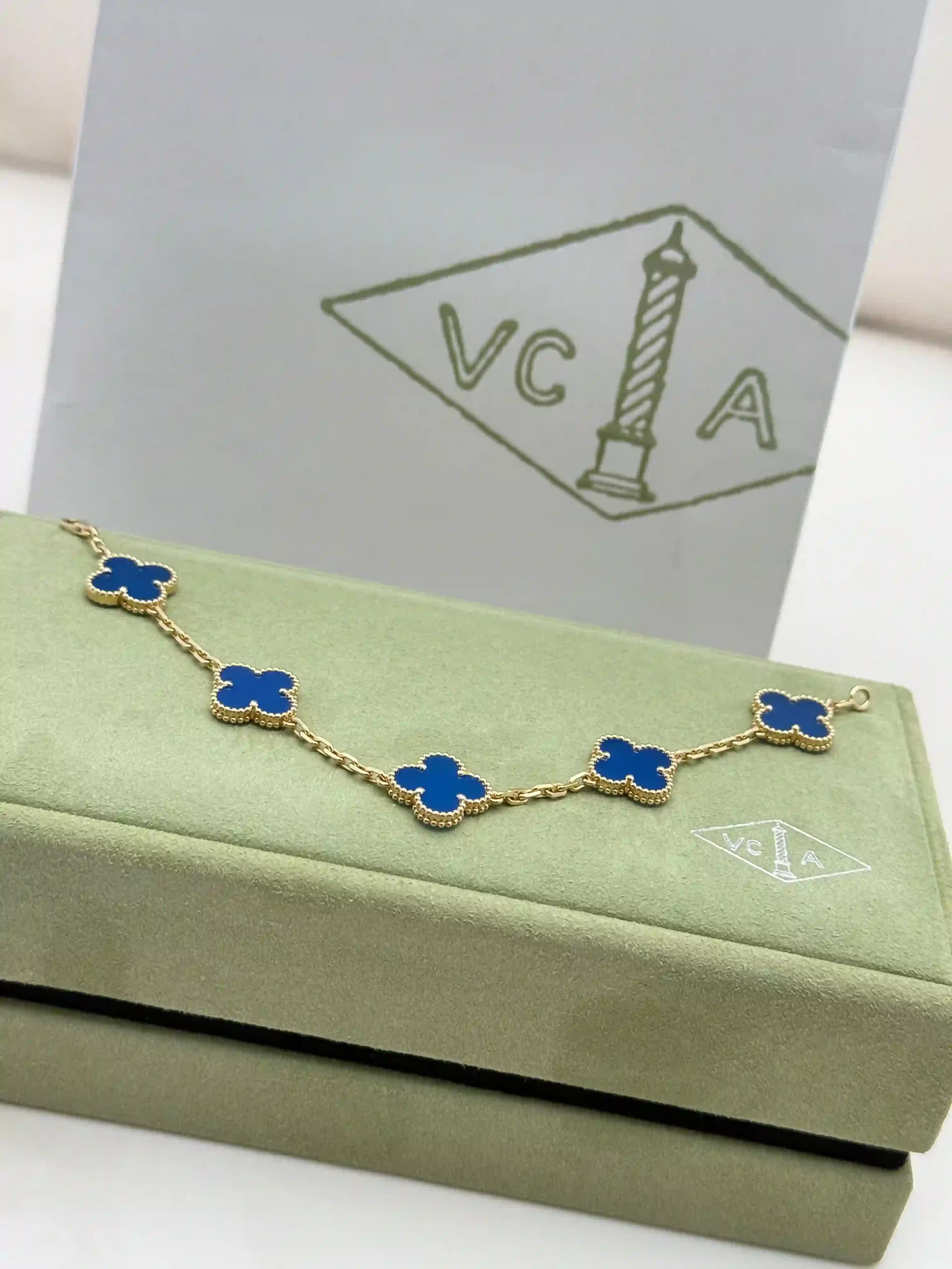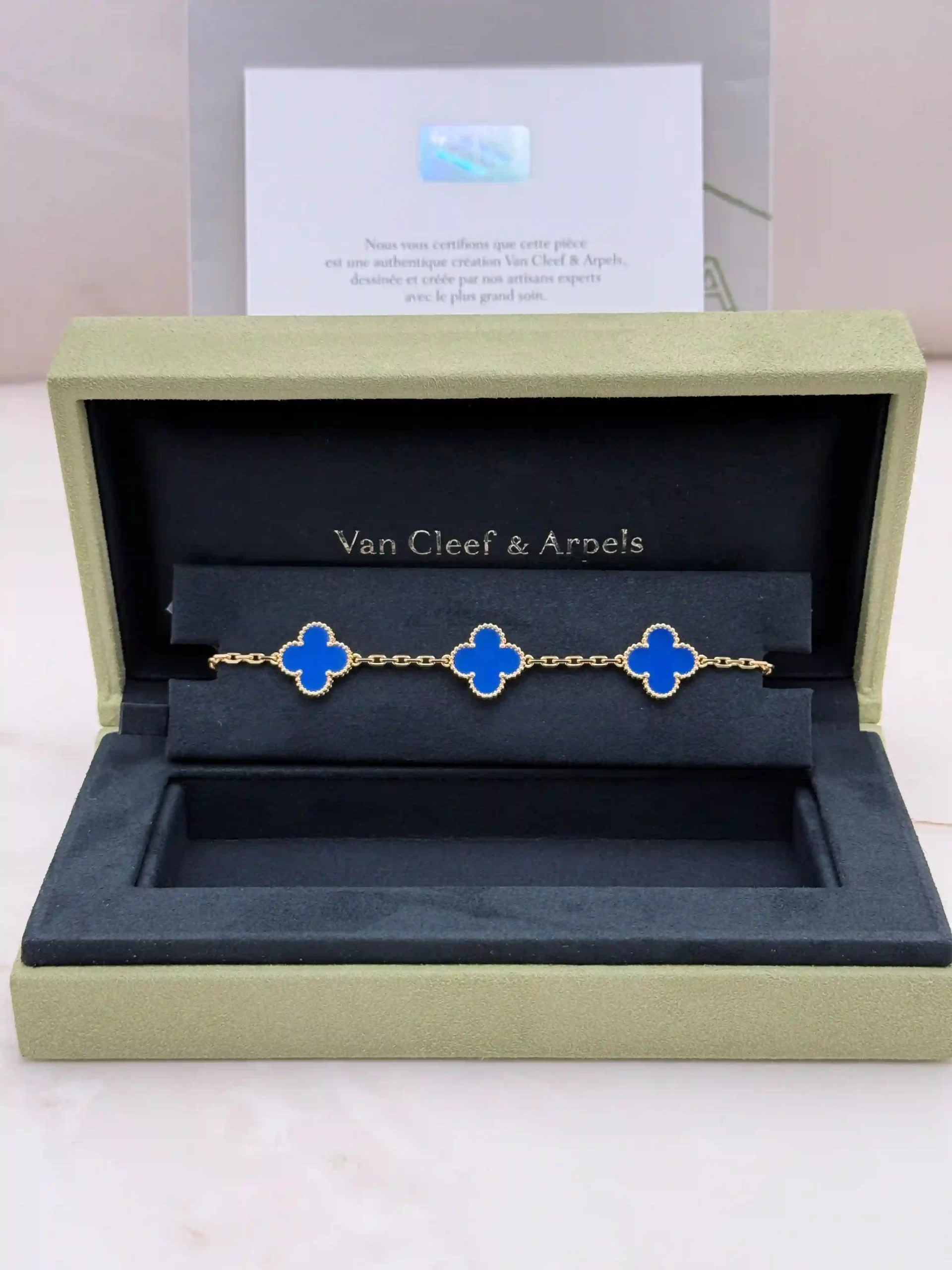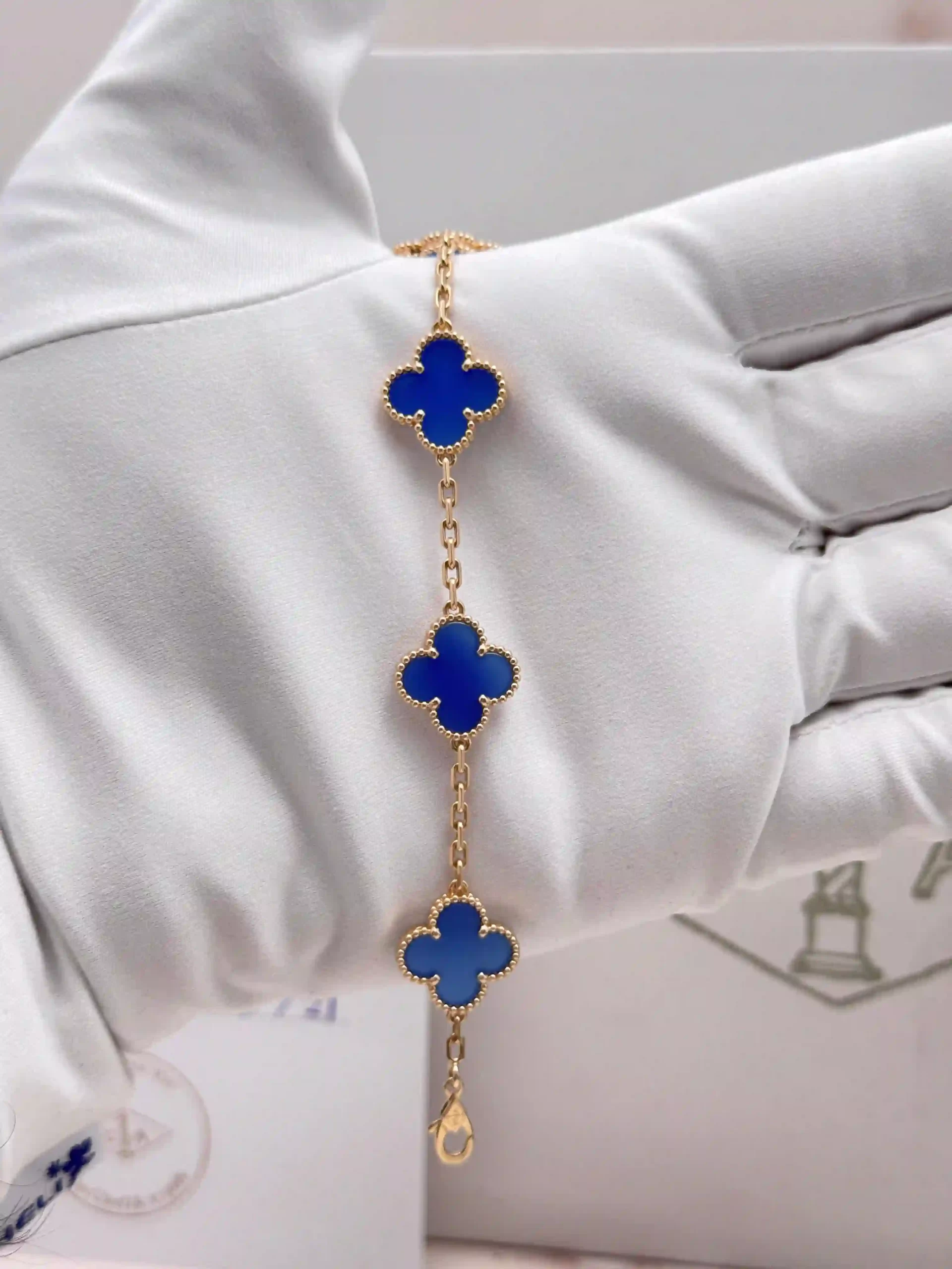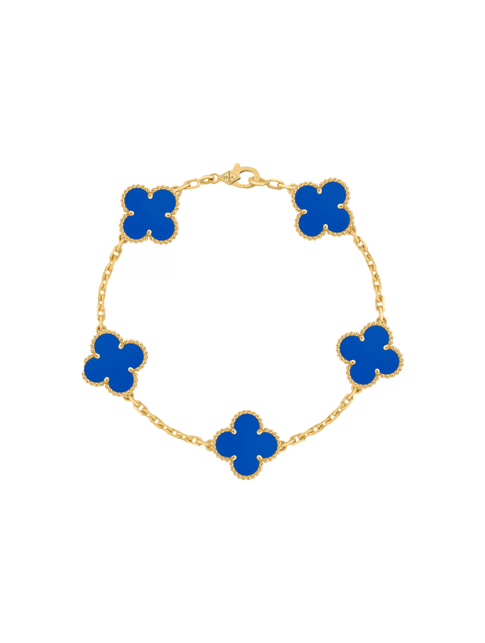Buy Van Cleef Arpels Vintage Alhambra Bracelet 5 Motifs , VCARP34900 , 18k Yellow Gold , Blue Agate , 100% Authentic , Best Price In Dubai & UAE