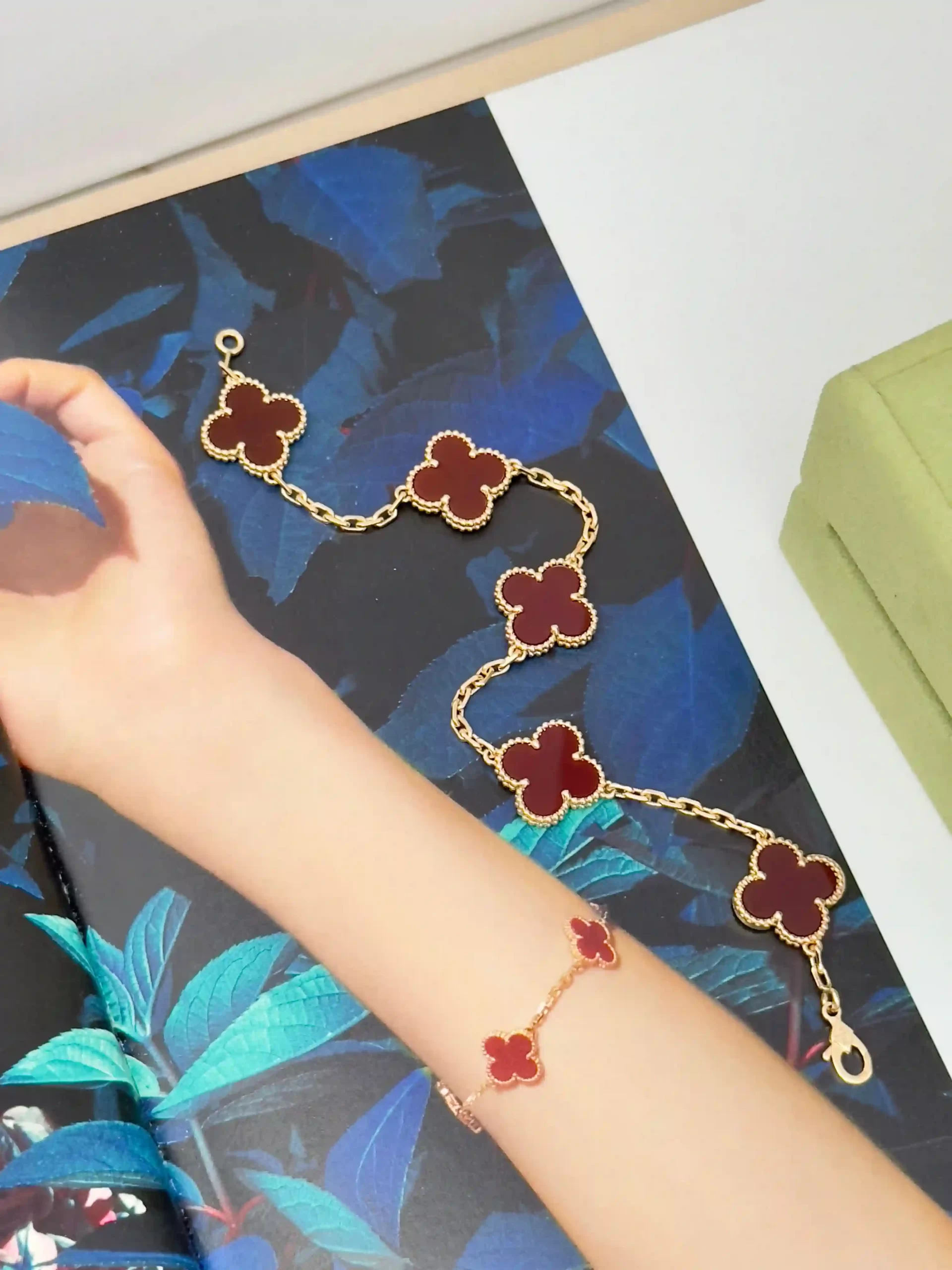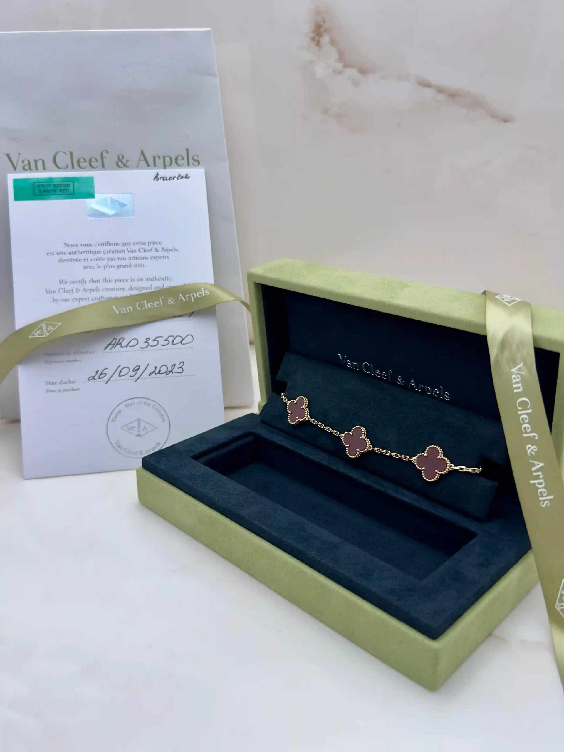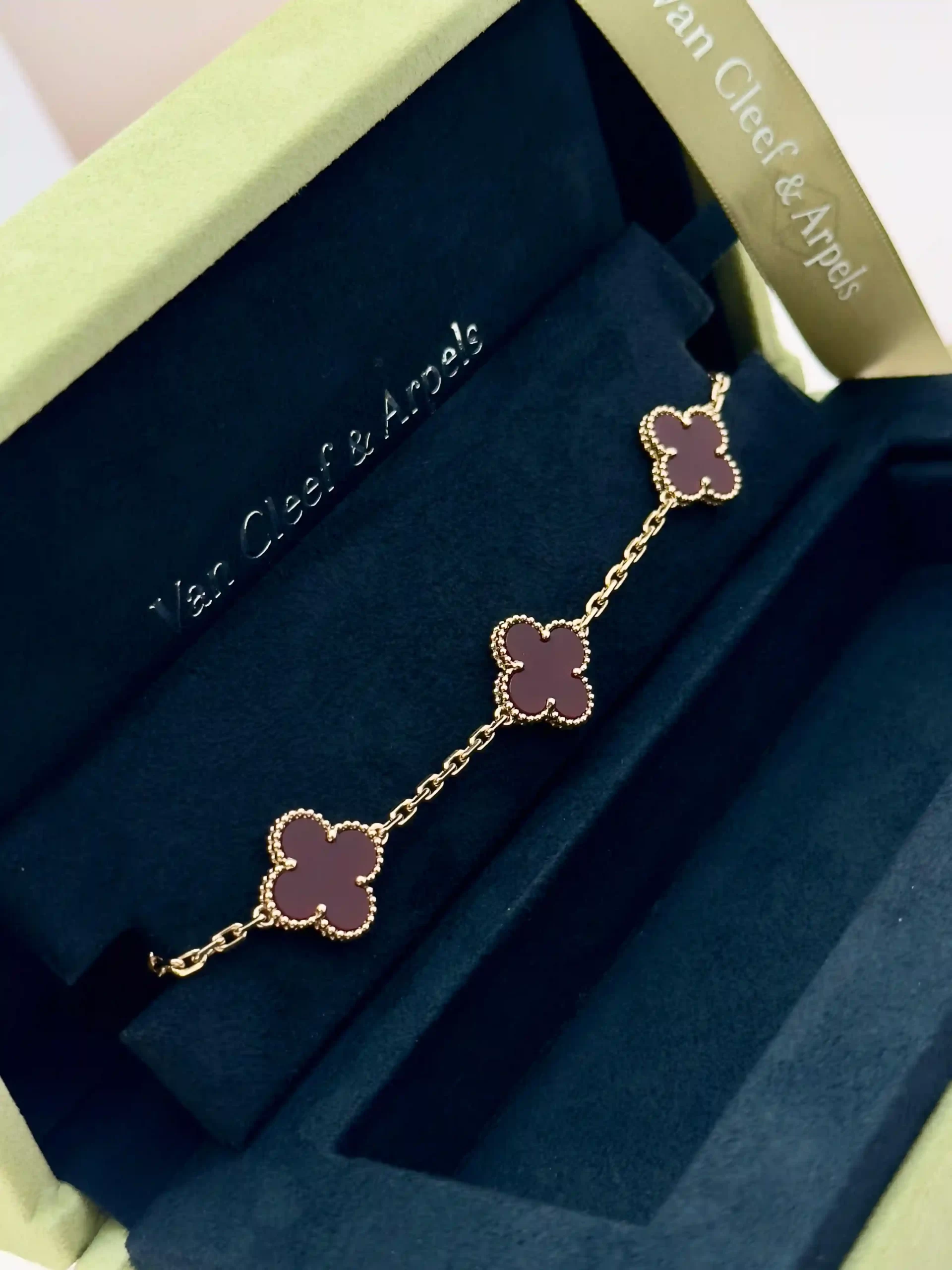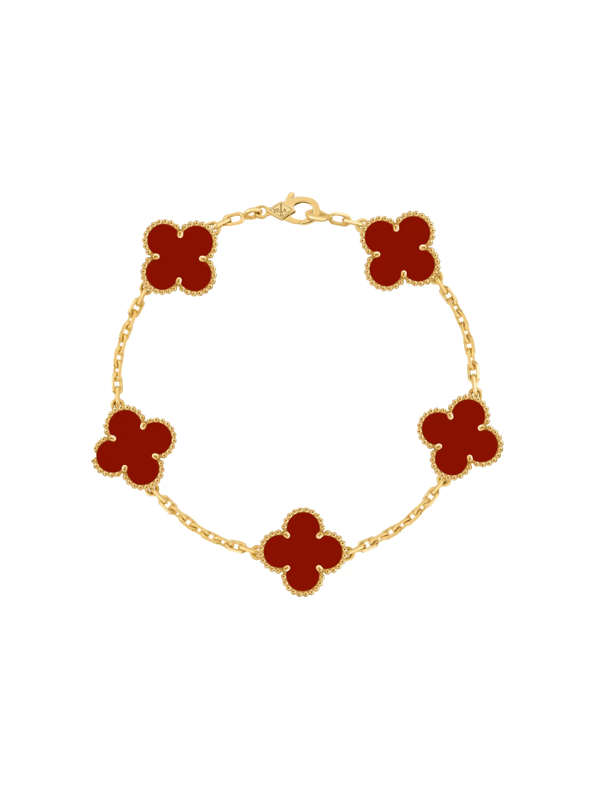 Buy Van Cleef Arpels Vintage Alhambra Bracelet 5 Motifs , VCARD35500 , 18k Yellow Gold , Carnelian , Best Price In Dubai & UAE , 100% Authentic