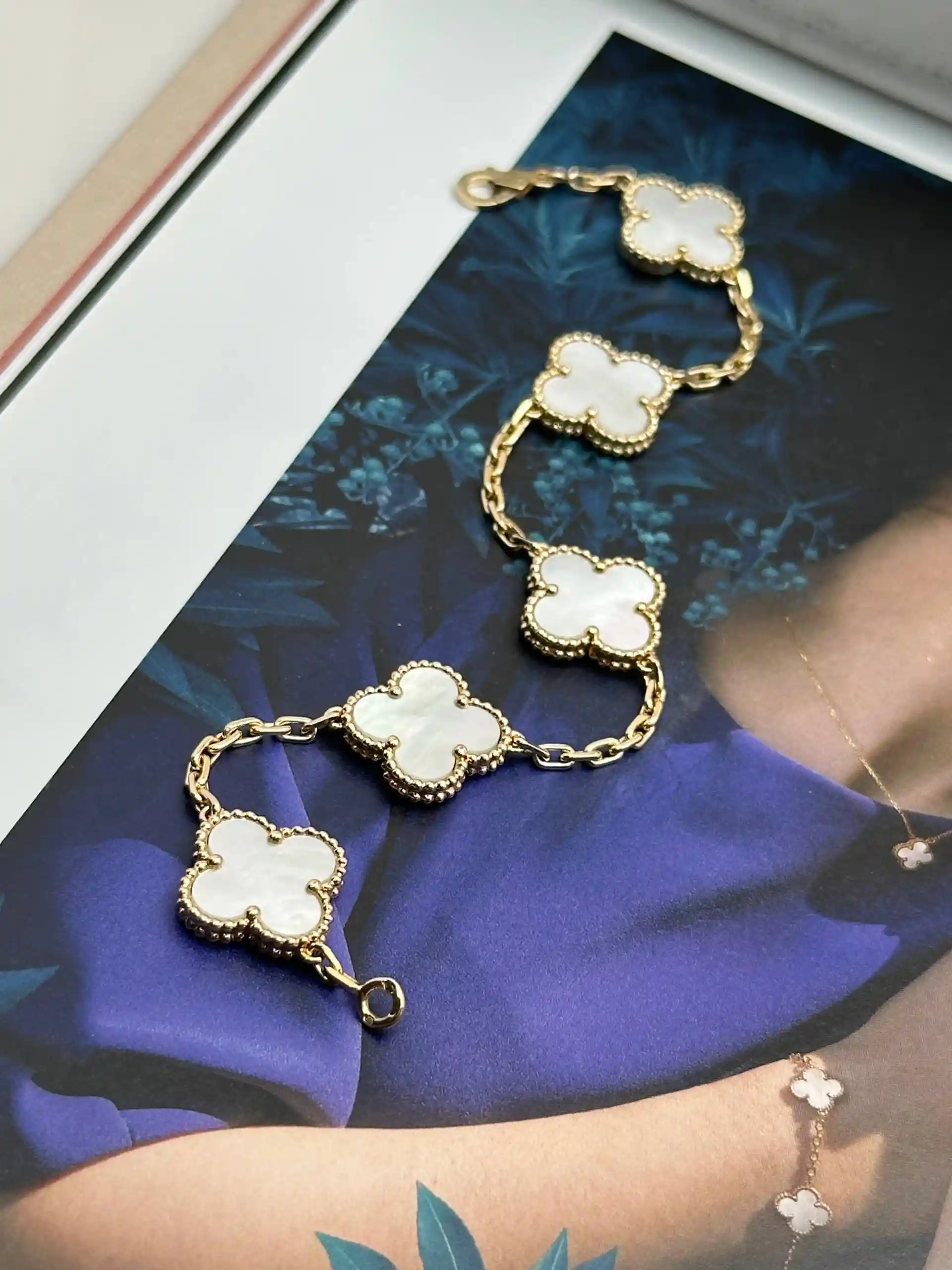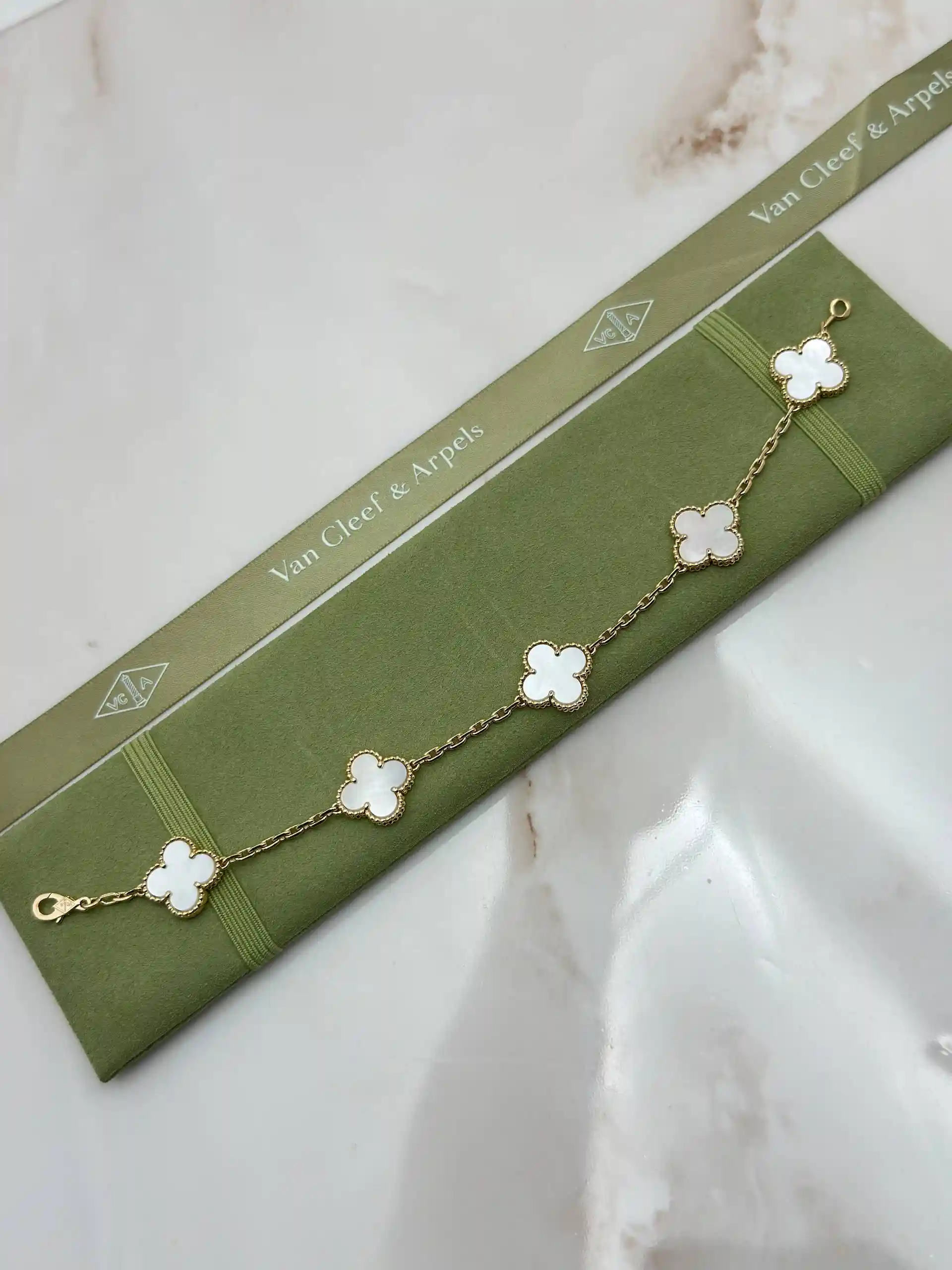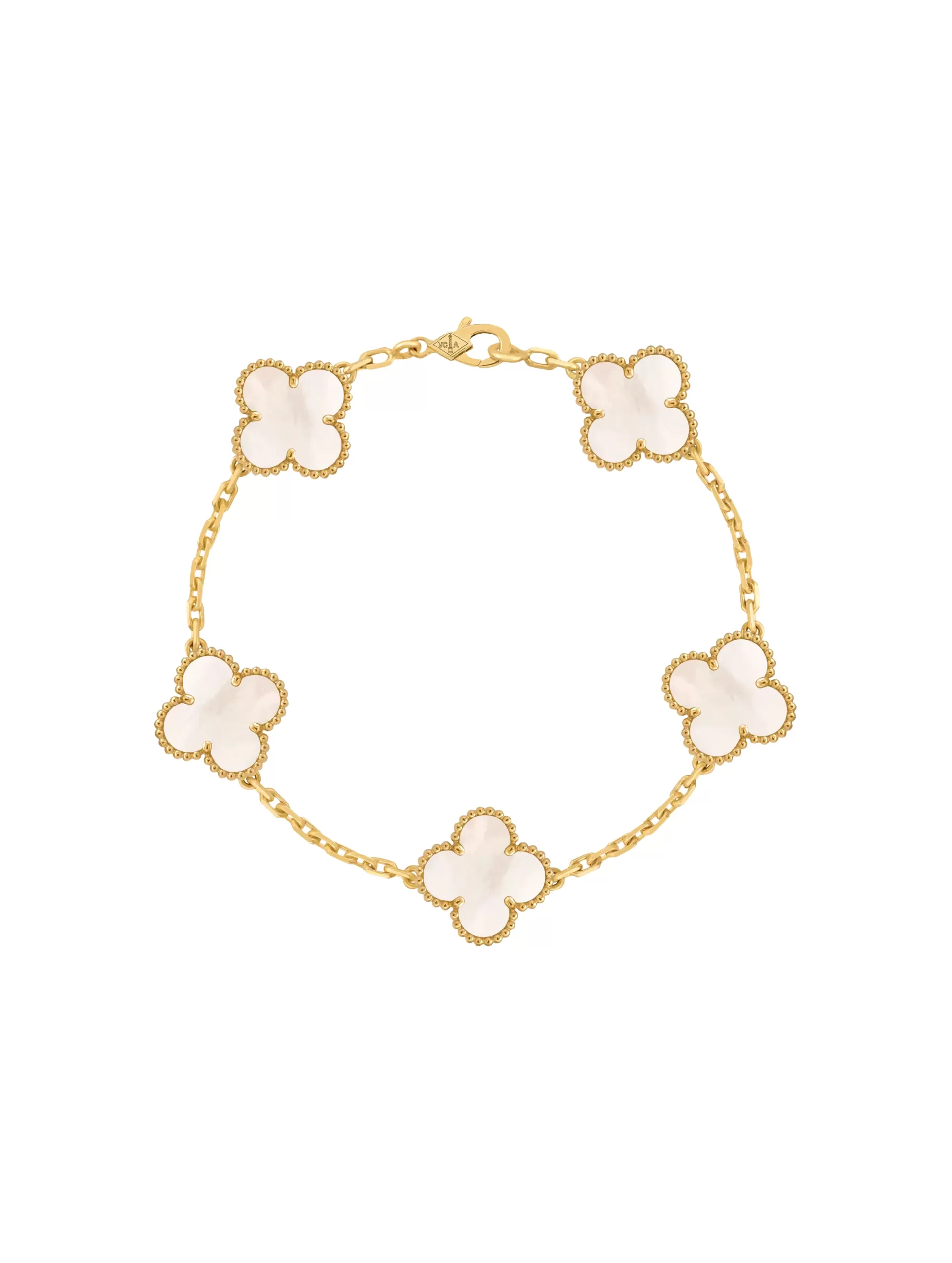 Buy Van Cleef Arpels Vintage Alhambra Bracelet VCARA41800, 5 Motifs, White Mother Of Pearl, 18k Yellow Gold, Best Price In Dubai & UAE, 100% Original