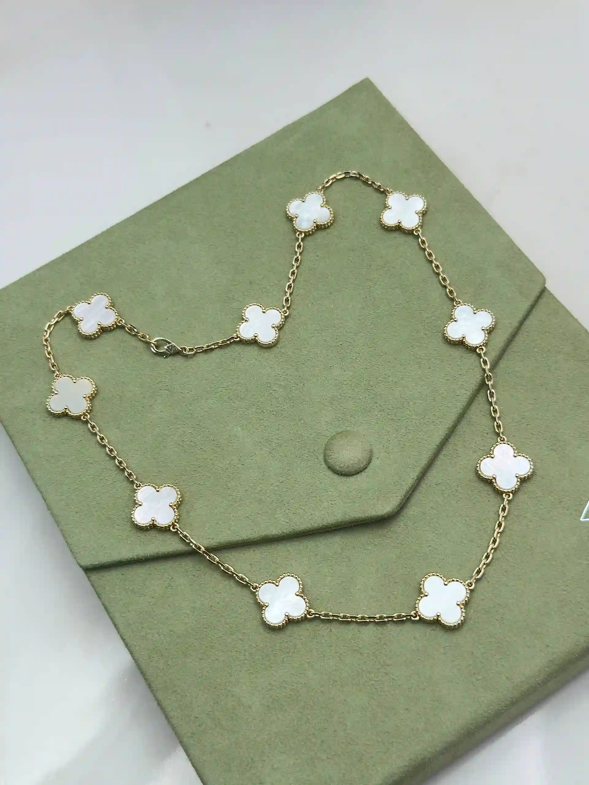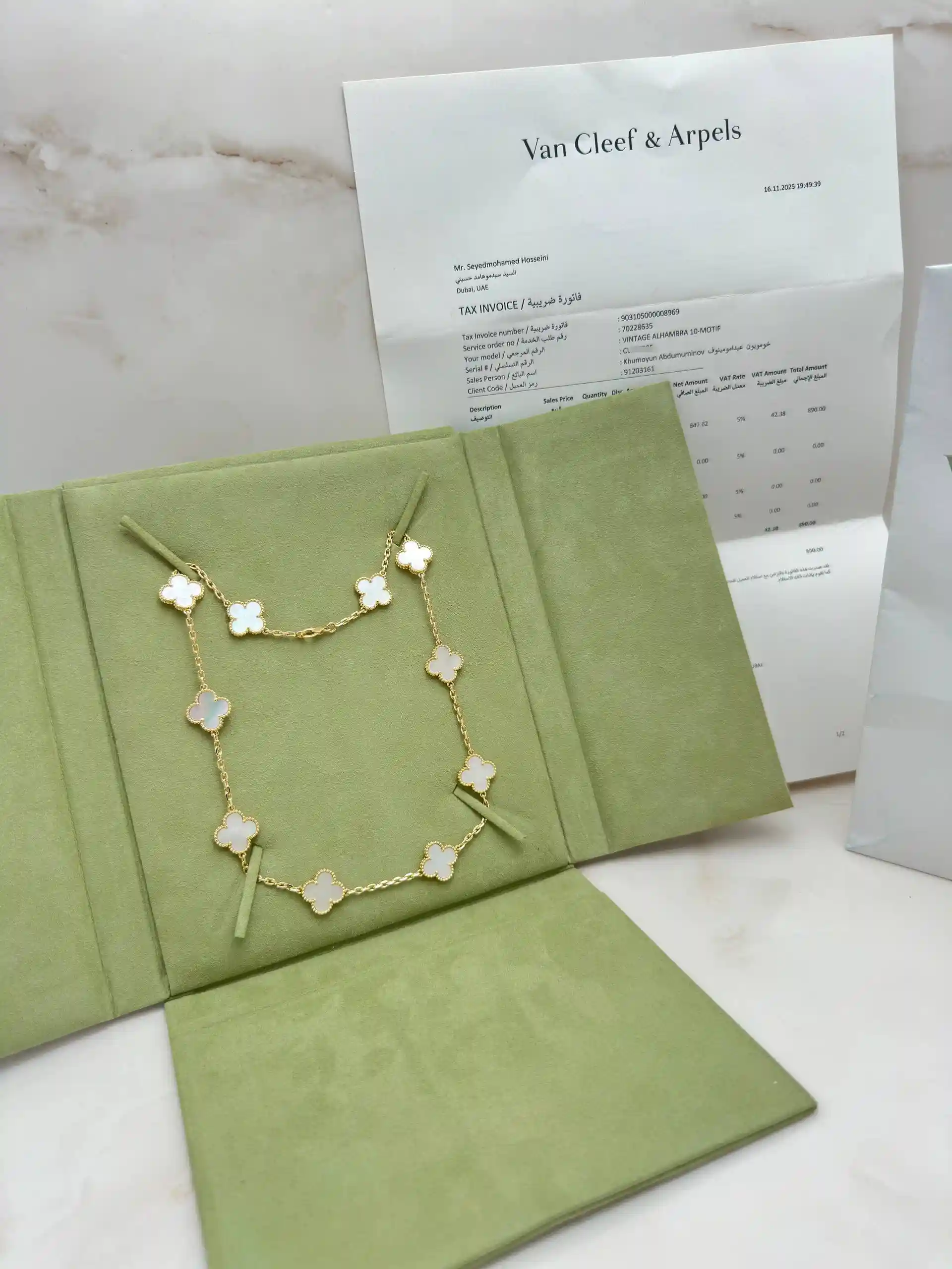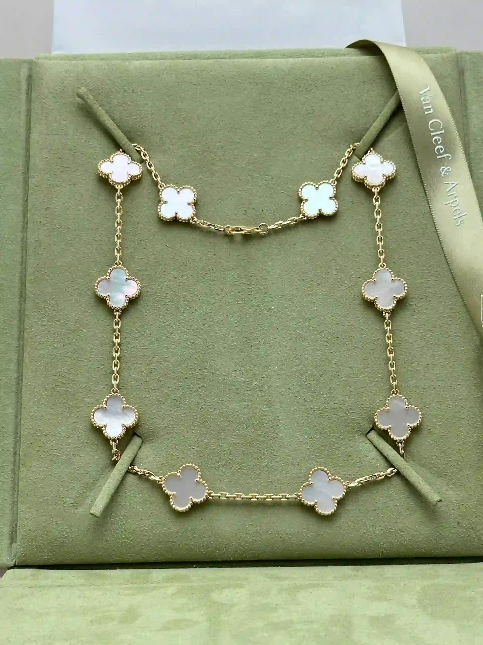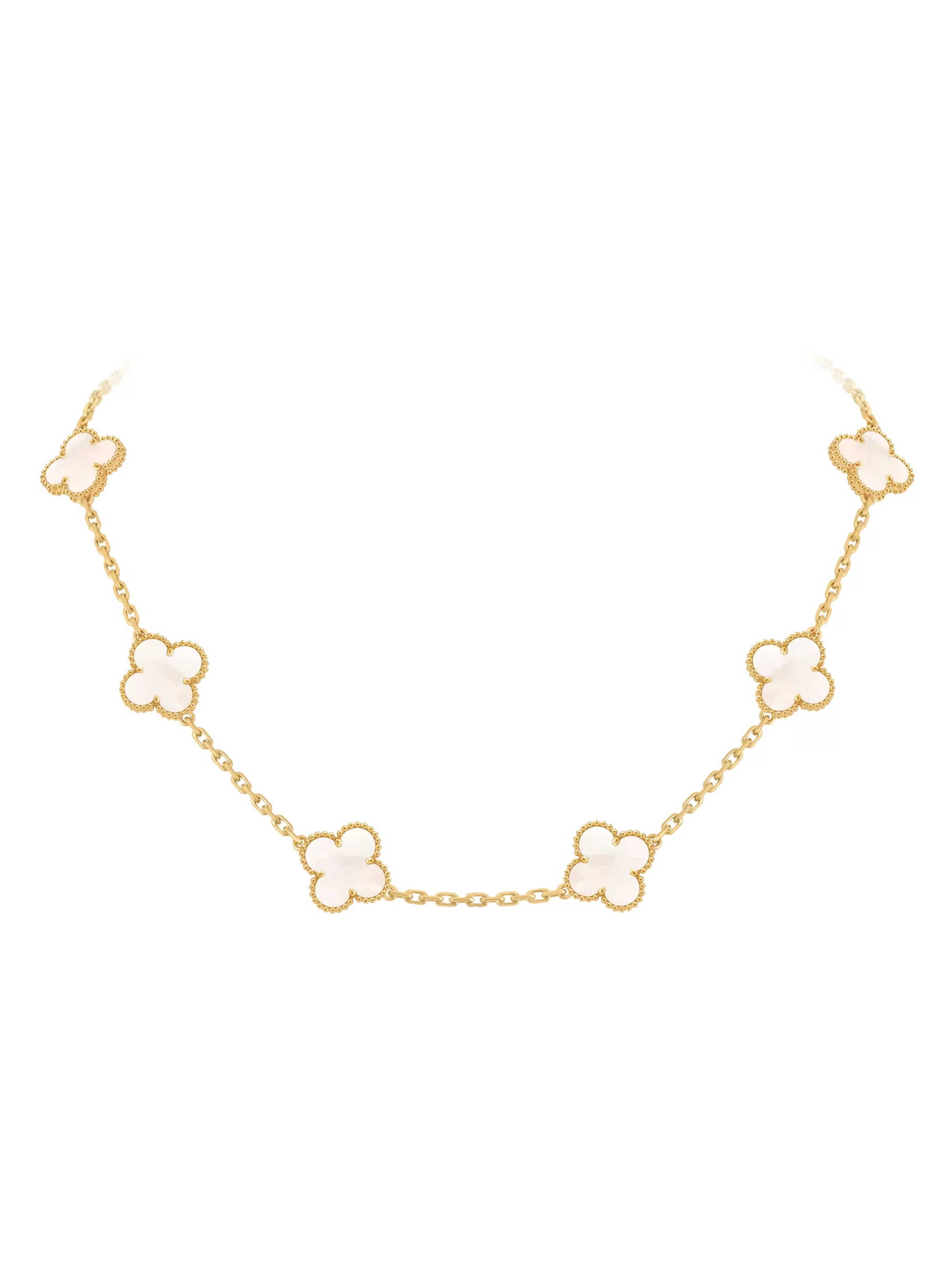 Buy Vintage Alhambra Necklace 10 Motifs, VCARA42800, 18k Yellow Gold, White Mother Of Pearl, 100% Original, Best Price In Dubai & UAE